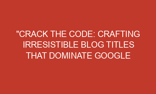 Crack the Code: Crafting Irresistible Blog Titles that Dominate Google Search Introduction: Writing a blog post is just the first step towards getting noticed on the vast world of the internet. But how do you make sure that your blog post stands out amongst the sea of others? The answer lies in crafting irresistible blog titles that dominate Google search results. In this blog post, we’ll explore the secrets to cracking the code and creating titles that will grab readers’ attention and help your blog soar to the top of the search rankings. Section 1: The Importance of a ...Read more