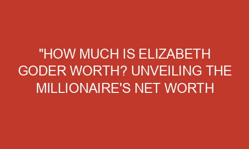 How Much is Elizabeth Goder Worth? Unveiling the Millionaire’s Net Worth and Success Story Introduction: Have you ever wondered how much money successful people are worth? Well, today we are going to dive into the world of Elizabeth Goder, a self-made millionaire. Elizabeth has achieved great success in her life and continues to inspire others with her incredible wealth. Join us as we take a peek into Elizabeth’s net worth and uncover her success story. Section 1: Early Life and Dreams Elizabeth Goder was born in a small town to a humble family. From a young age, she dreamed ...Read more